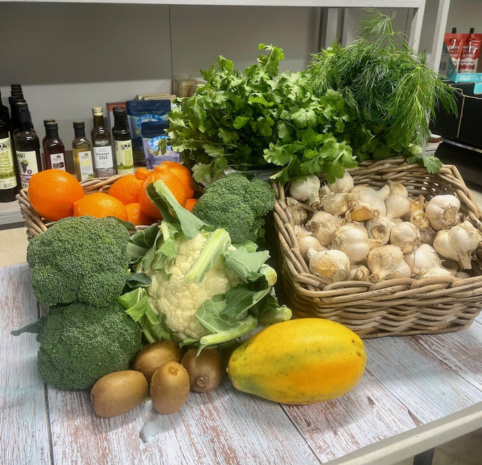 Each box contains a carefully curated selection of the freshest seasonal organic produce from local Sunshine Coast farms. You'll receive a variety of fruits, vegetables, and herbs that changes with the seasons. We also include recipe cards and storage tips to help you make the most of your fresh produce.